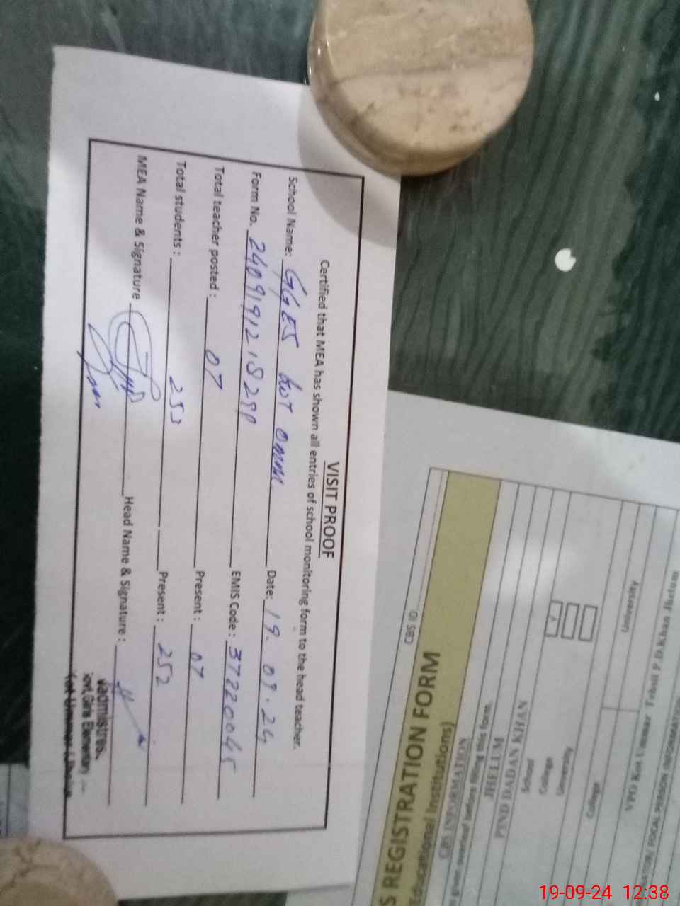 | Attendance Register | Head Teacher | MEA with School | Visit Proof |