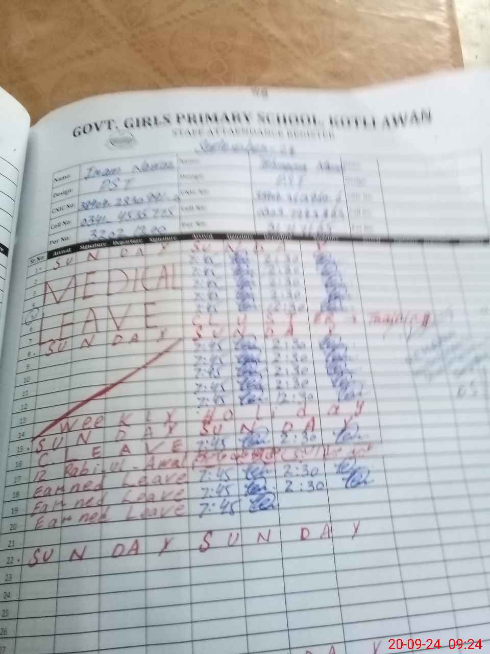 | Remarks (Use Separate Page if Required): Approved Leave of PST irum Nawaz not provided | |||||