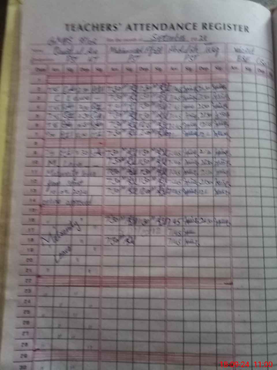 | No. of Students Present - Male | 8 | 0 | 13 | 18 | 40 | 26 | 6 | 13 | 124 | |||||||