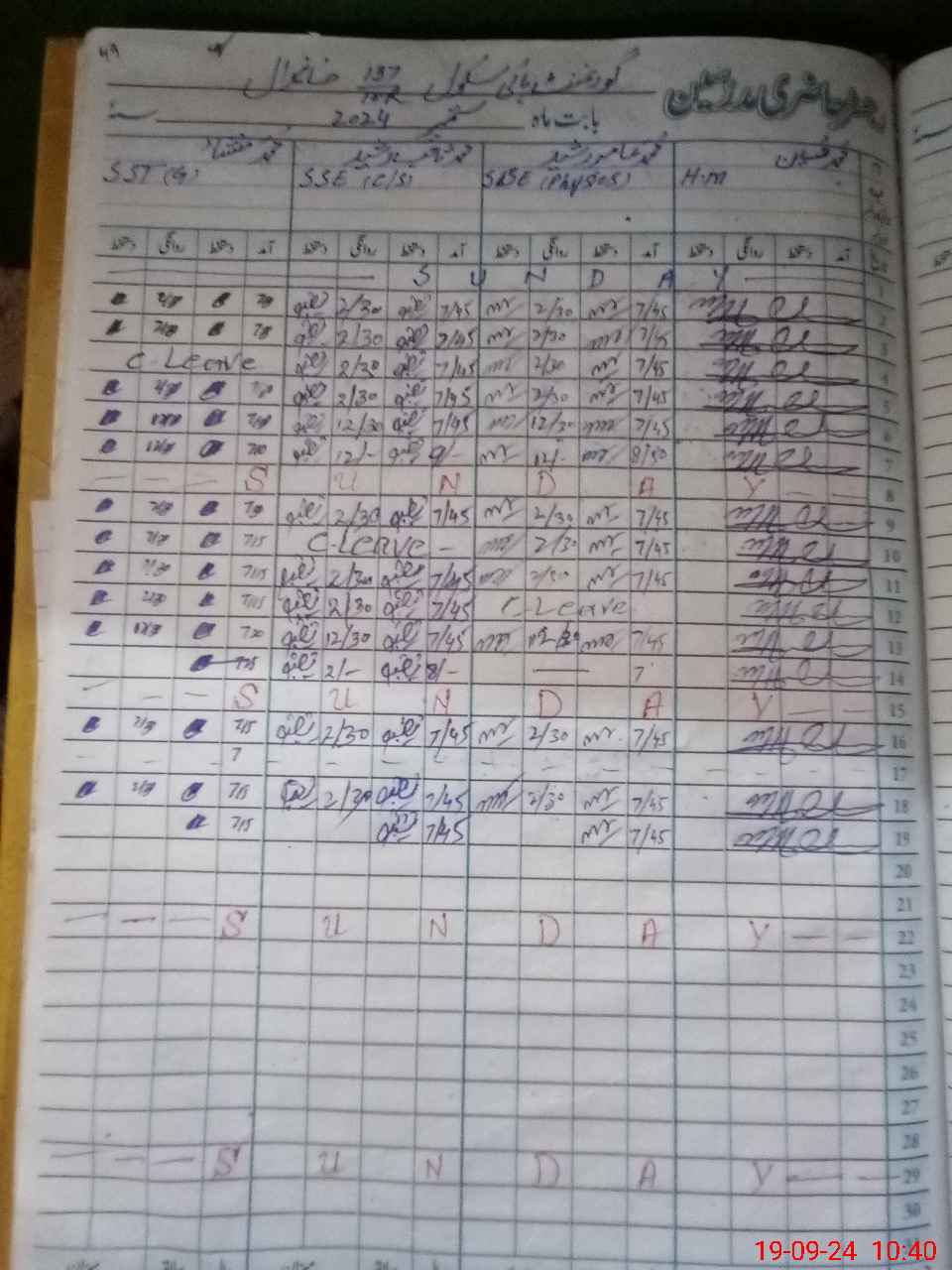 | Leave | Duty | Absent | Maternity | Medical | Ex- Pak |