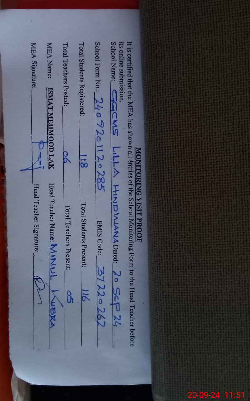 | EMIS Code: 37220262 | Name of School: GGCMS LILLA HINDWANA | |||