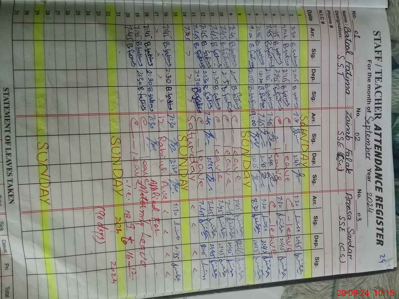 | 36**** | MAr**** | SG | Regular | 0 | 0 | 0 | 0 | 0 | 0 | 0 | 0 | 0 | Absent (Un-Authorized) |