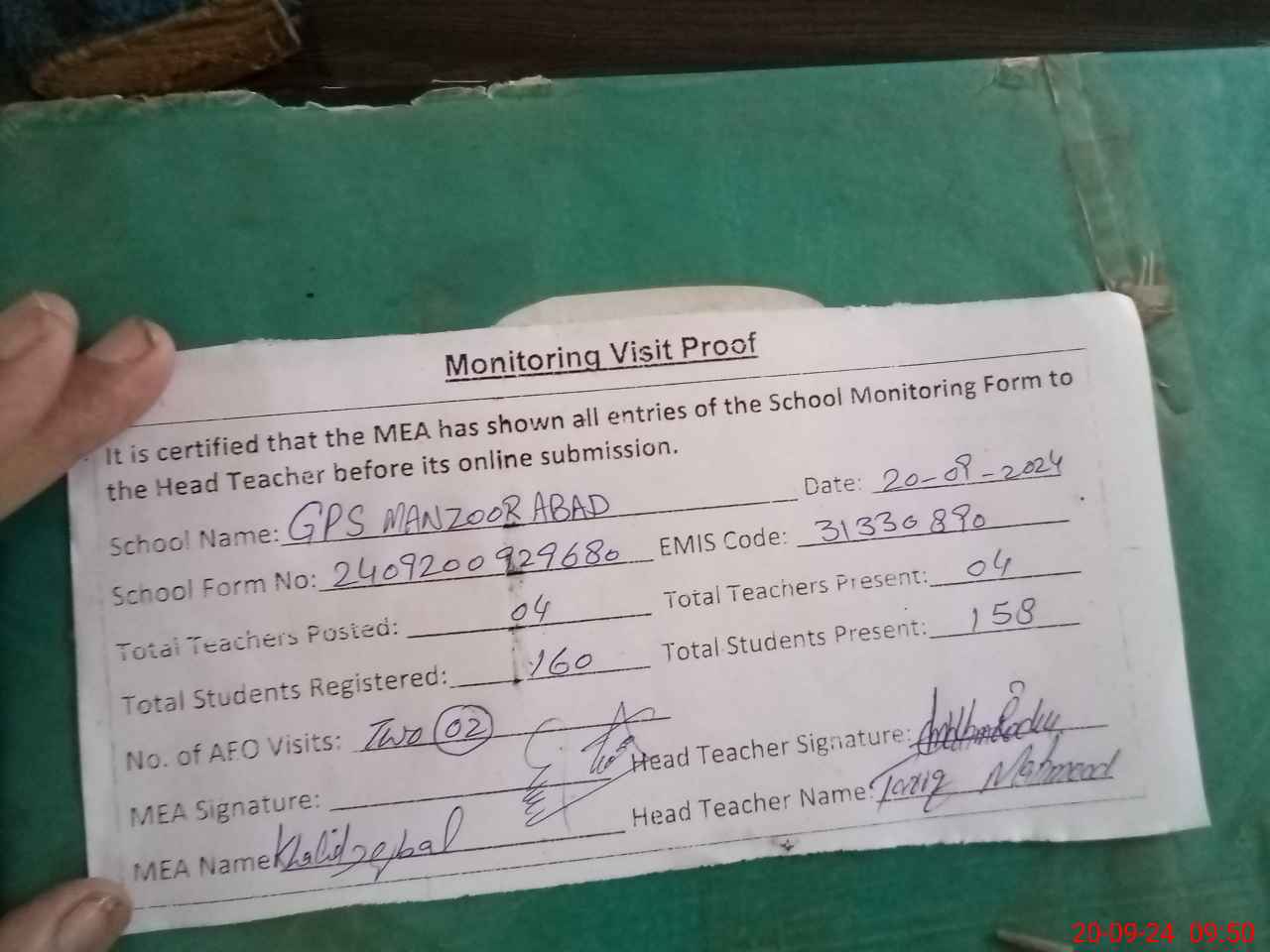 | EMIS Code: 31330890 | Name of School: GPS MANZOOR ABAD | |||