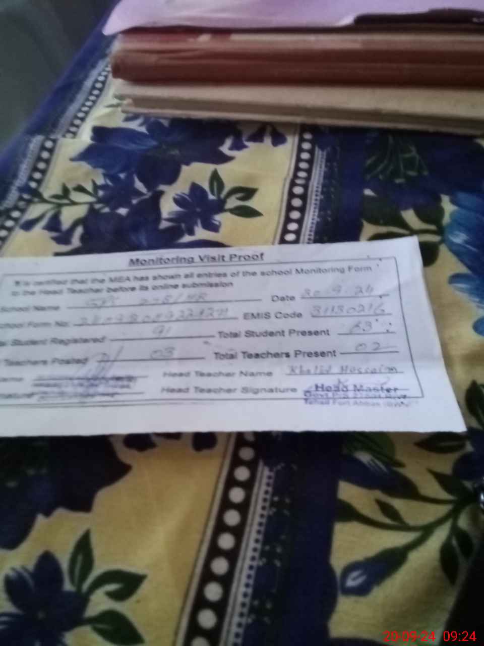 | Name: Kh**** Hu**** Designation: (School Headmaster's/Headmistress's) PST Phone/Cell Number: 03**** |