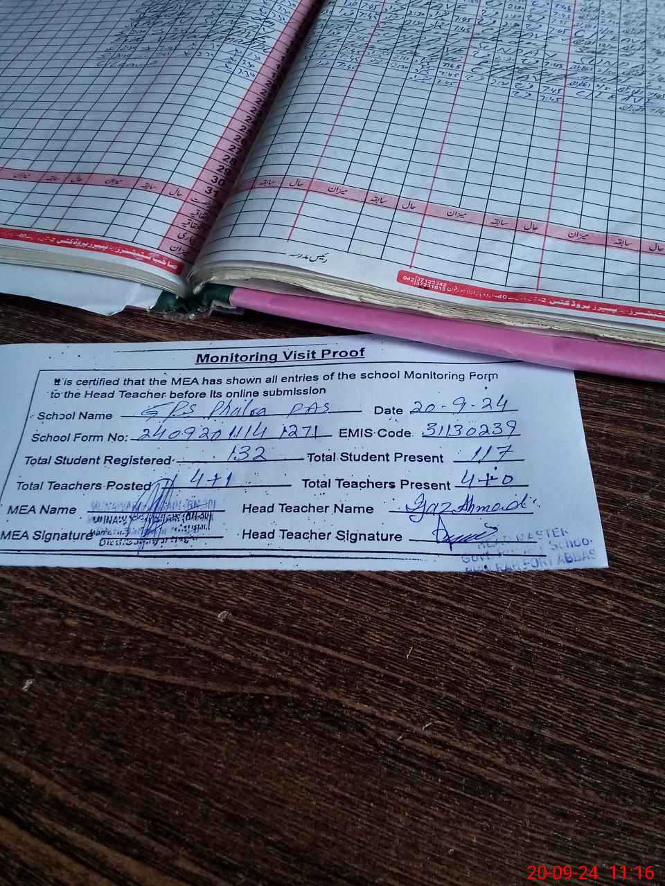 | EMIS Code: 31130239 | Name of School: GPS PHULRA FORT ABBAS | |||