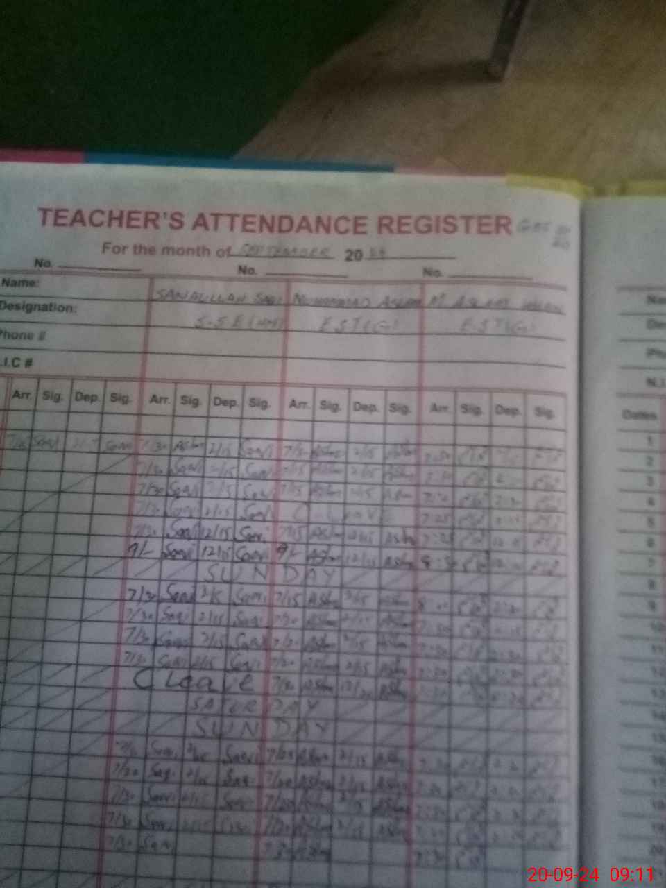 | Name: SA**** UL**** SA**** Designation: (School Headmaster's/Headmistress's) SSE (GEN) Phone/Cell Number: 03**** |