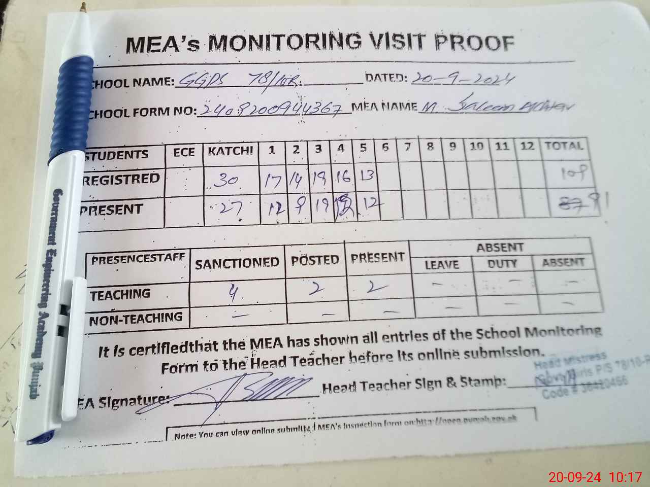 | EMIS Code: 36420466 | Name of School: GGPS 78/10-R, KACHA KHUH | |||