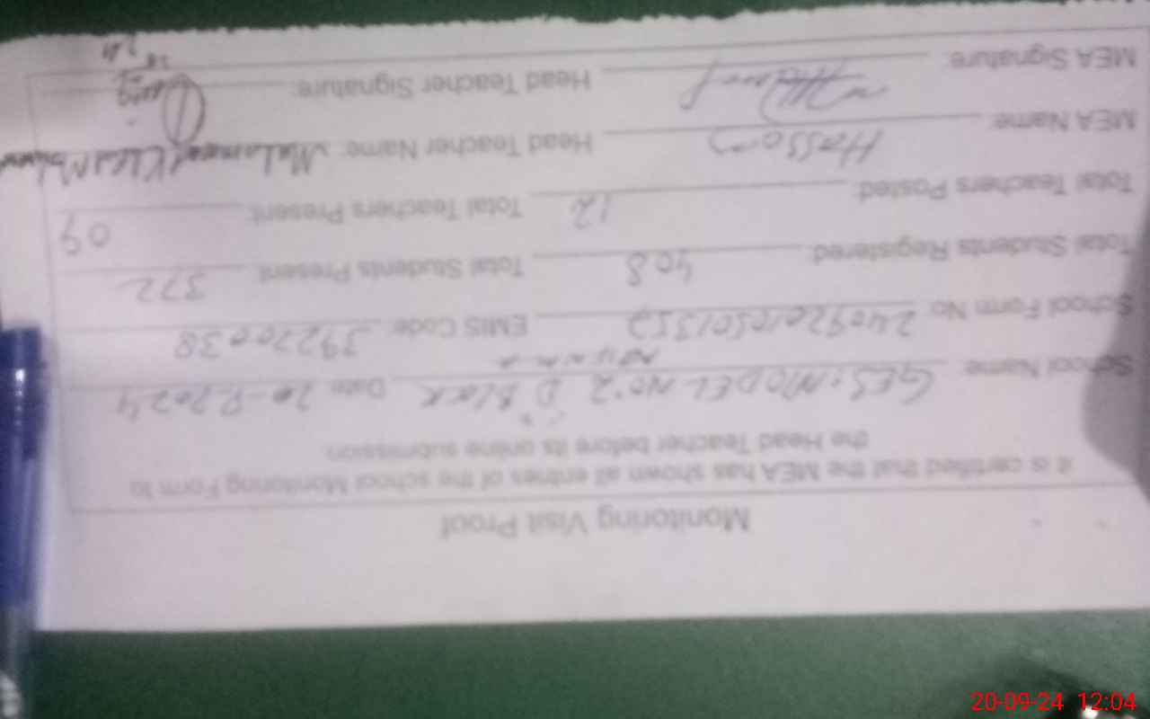 | Attendance Register | Head Teacher | MEA with School | Visit Proof |