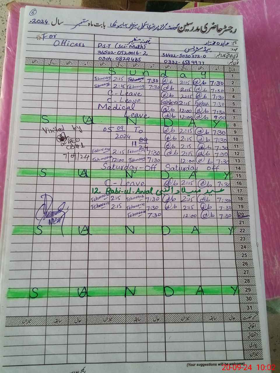 | Name: Ab**** Mu**** Designation: (School Headmaster's/Headmistress's) PST Phone/Cell Number: 03**** |