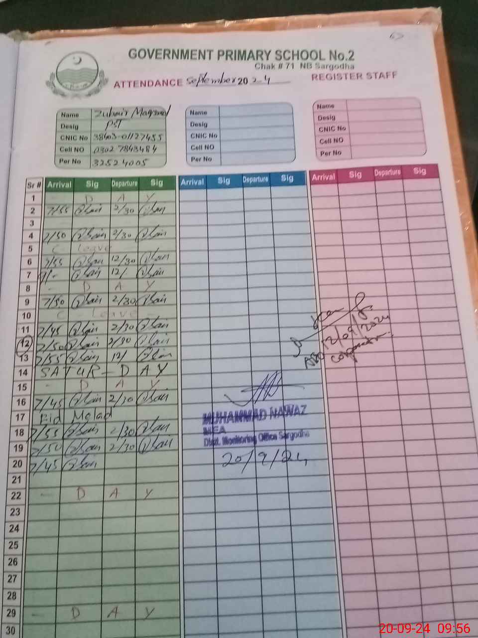 | Name: Zu**** Ma**** Designation: (School Headmaster's/Headmistress's) PTC Phone/Cell Number: 03**** |