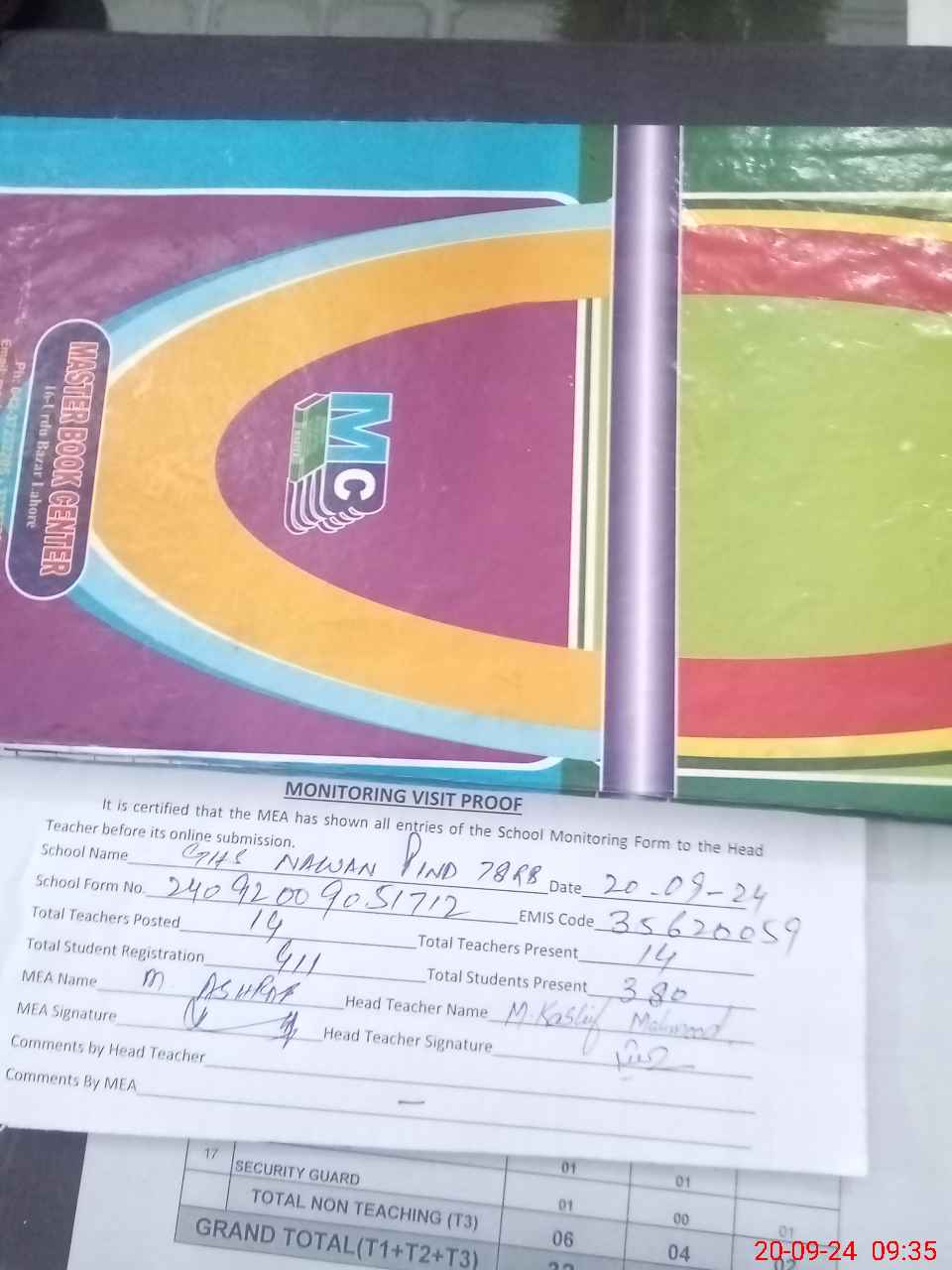 | Attendance Register | Head Teacher | MEA with School | Visit Proof |