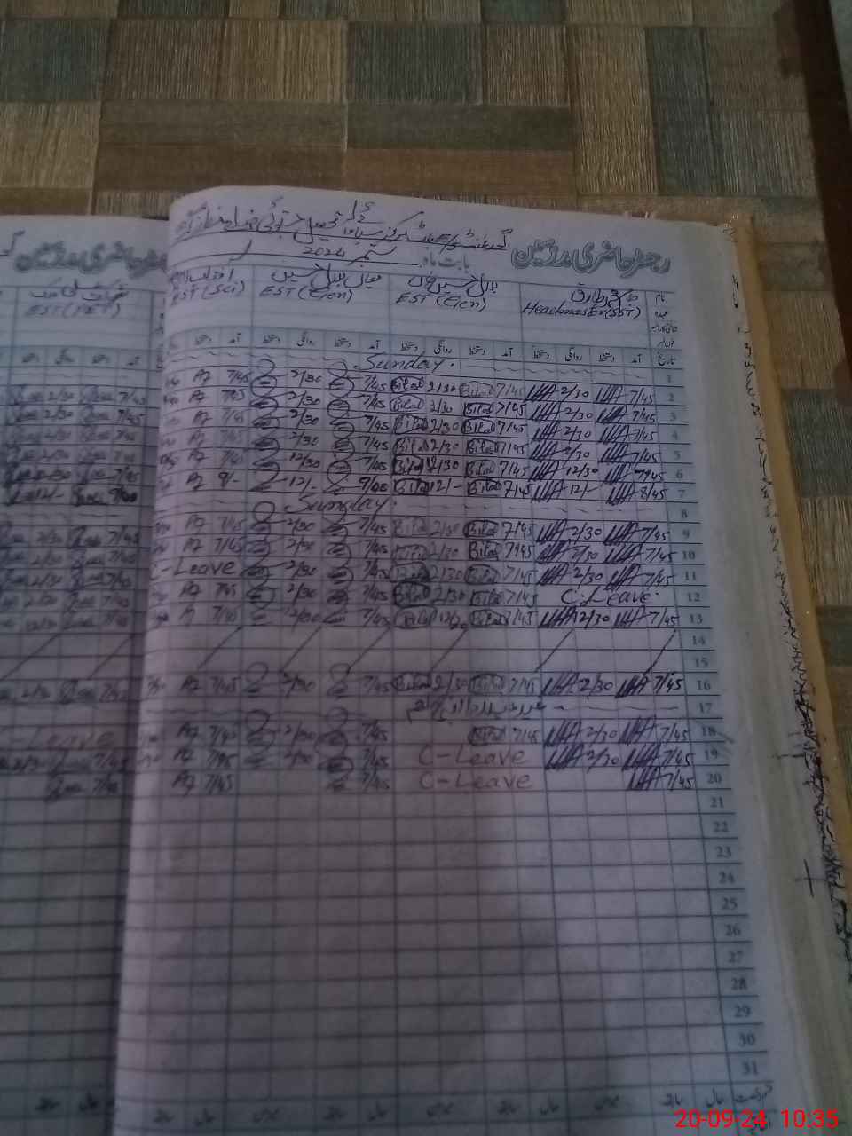 | Leave | Duty | Absent | Maternity | Medical | Ex- Pak |