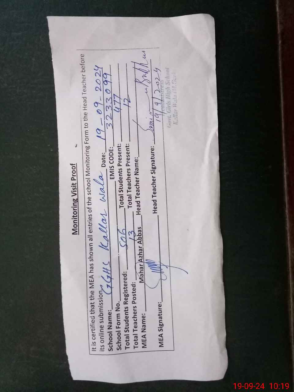 | EMIS Code: 32330099 | Name of School: GGHS KALLAR WALA | |||