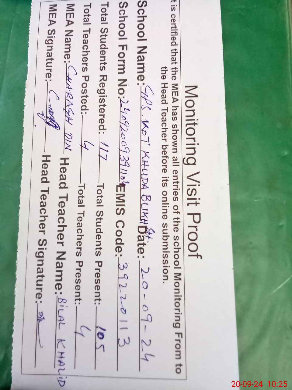 | EMIS Code: 39220113 | Name of School: GPS KOT KHUDA BUKHSH | |||