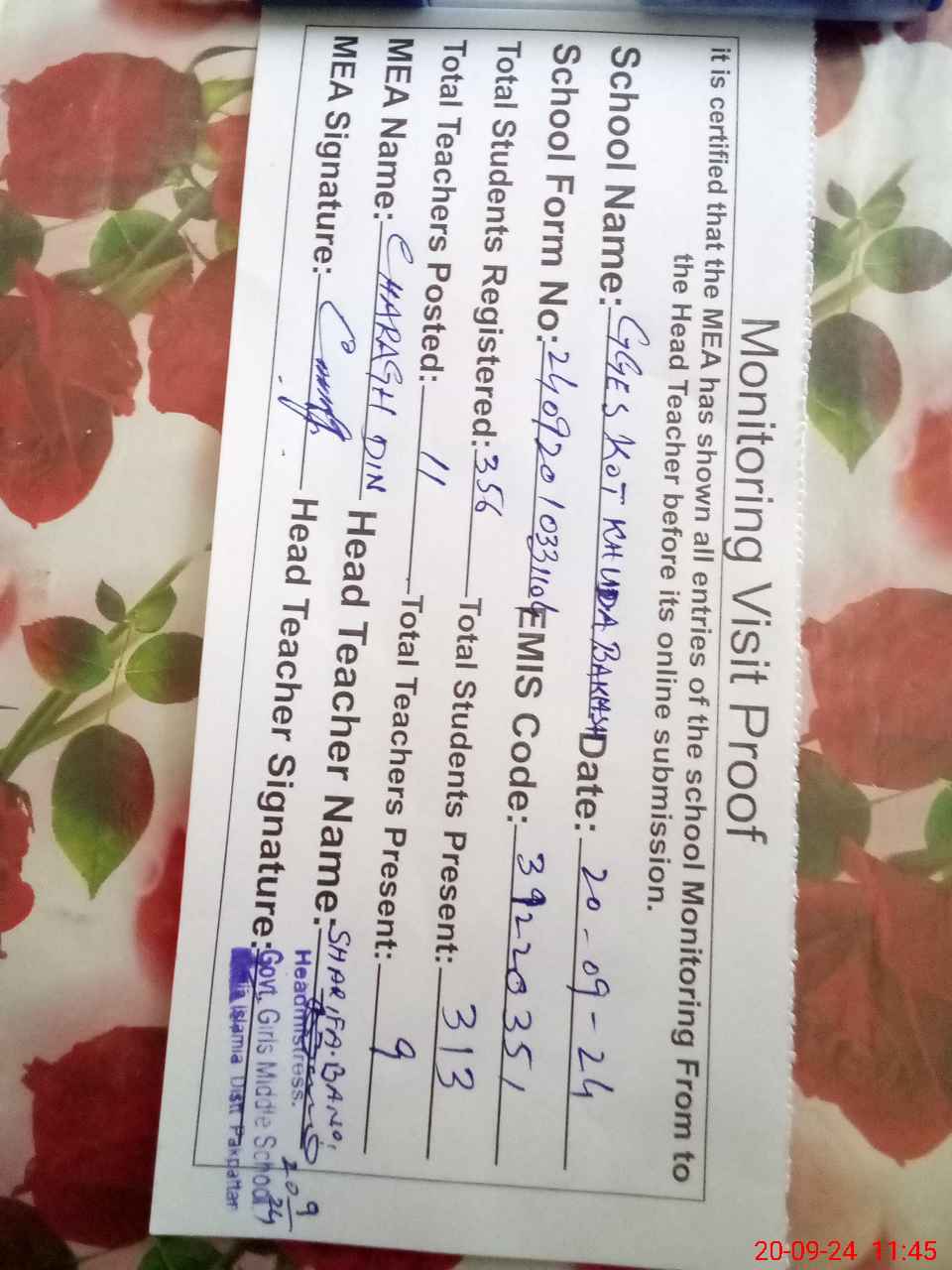 | EMIS Code: 39220351 | Name of School: GGES KOT KHUDA BUKSH | |||
