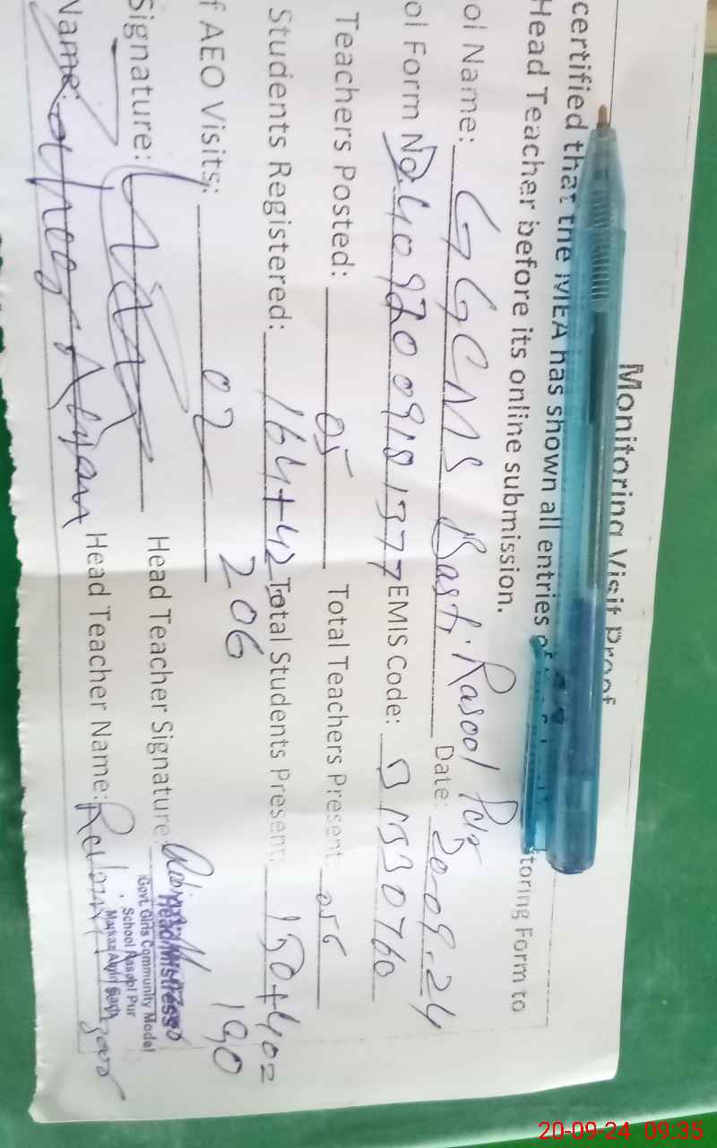 | EMIS Code: 31330760 | Name of School: GGCMS RASOOL PUR | |||