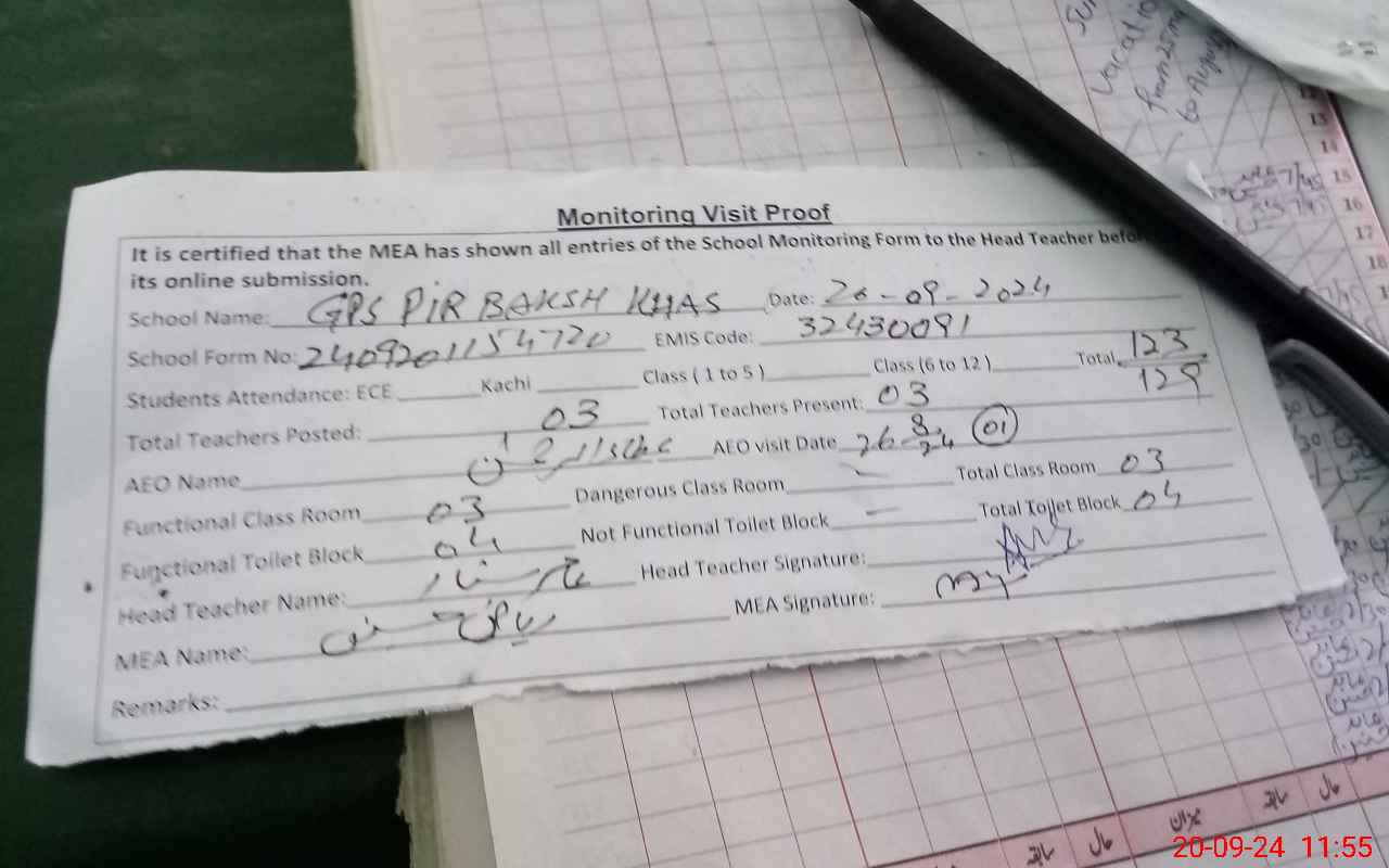 | EMIS Code: 32430091 | Name of School: GPS PIR BAKHSH KHAS | |||