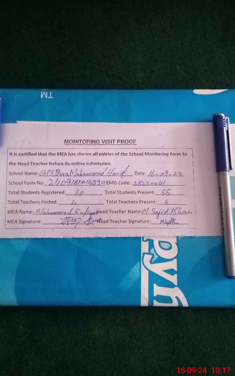 | EMIS Code: 38220041 | Name of School: GPS DERA MUHAMMAD HANIF | |||