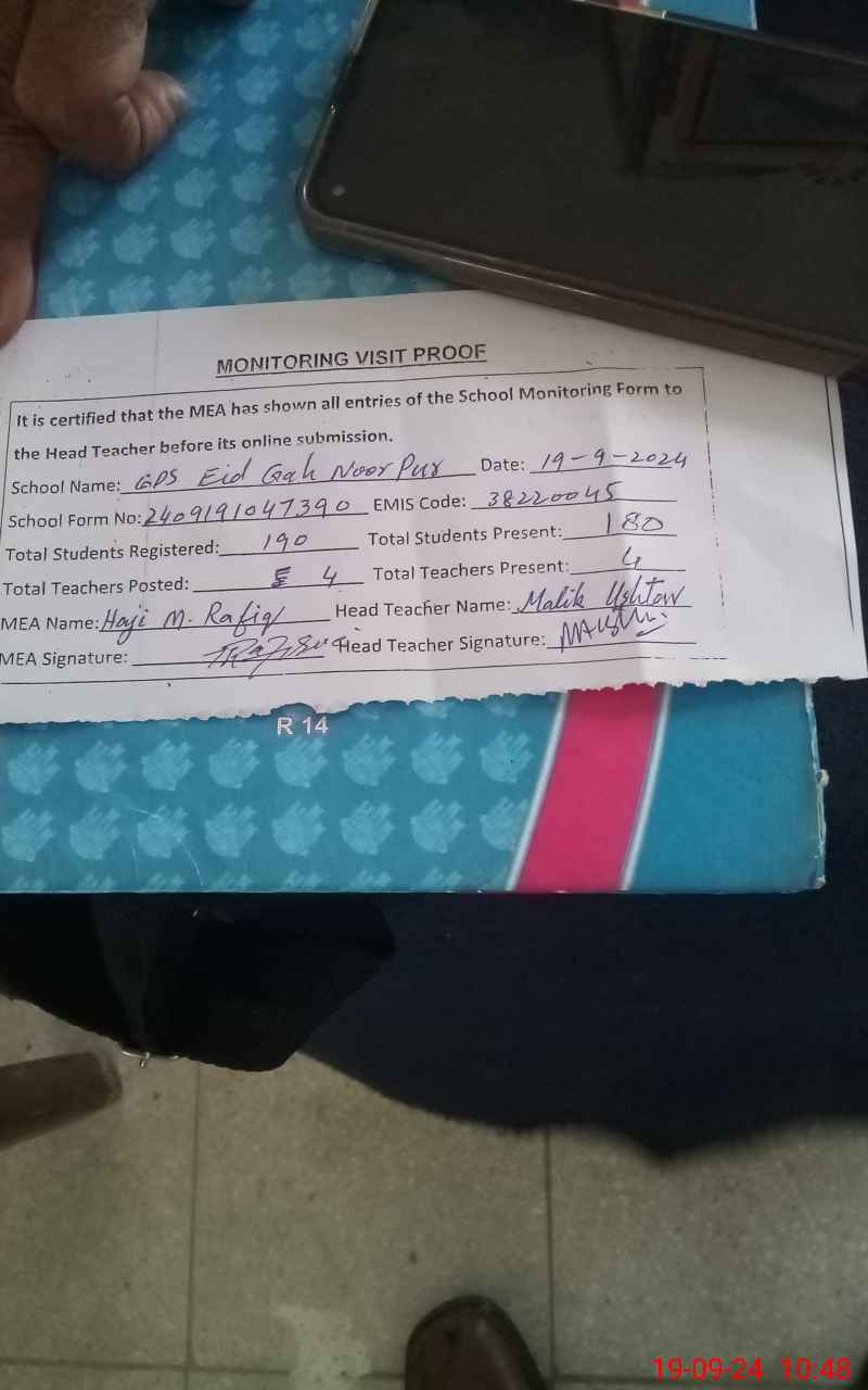 | EMIS Code: 38220045 | Name of School: GPS EID GAH NOOR PUR | |||