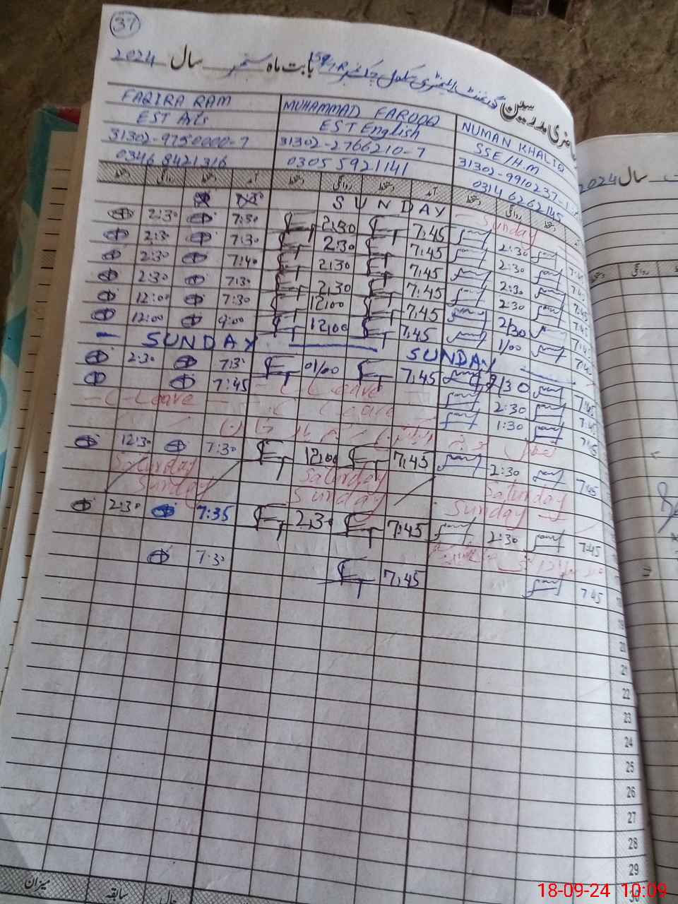 | CNIC | Full Name | Designation | R/C | Absence During Last Calender Month |