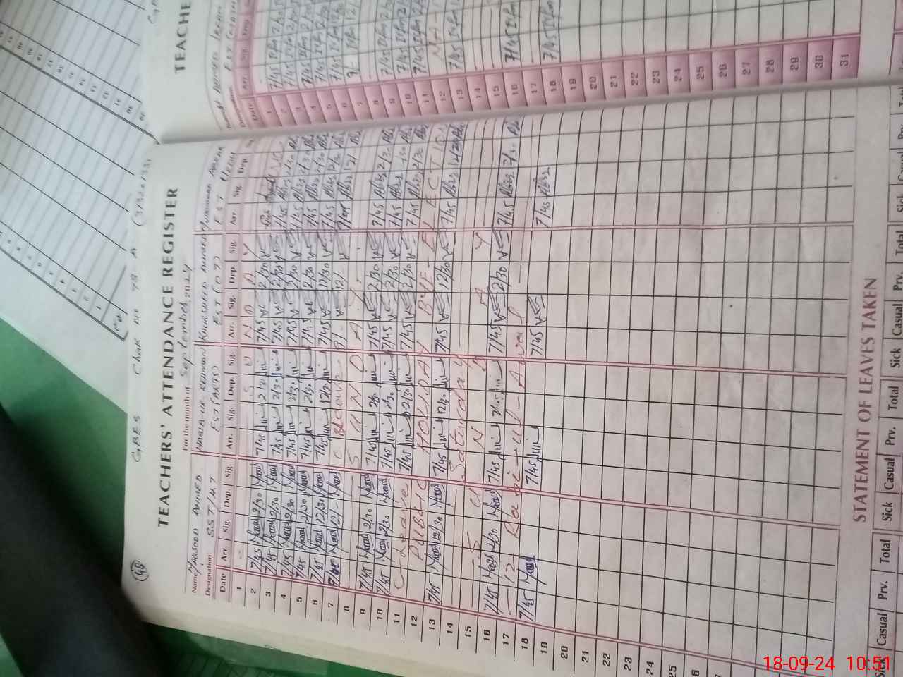 | Leave | Duty | Absent | Maternity | Medical | Ex- Pak |