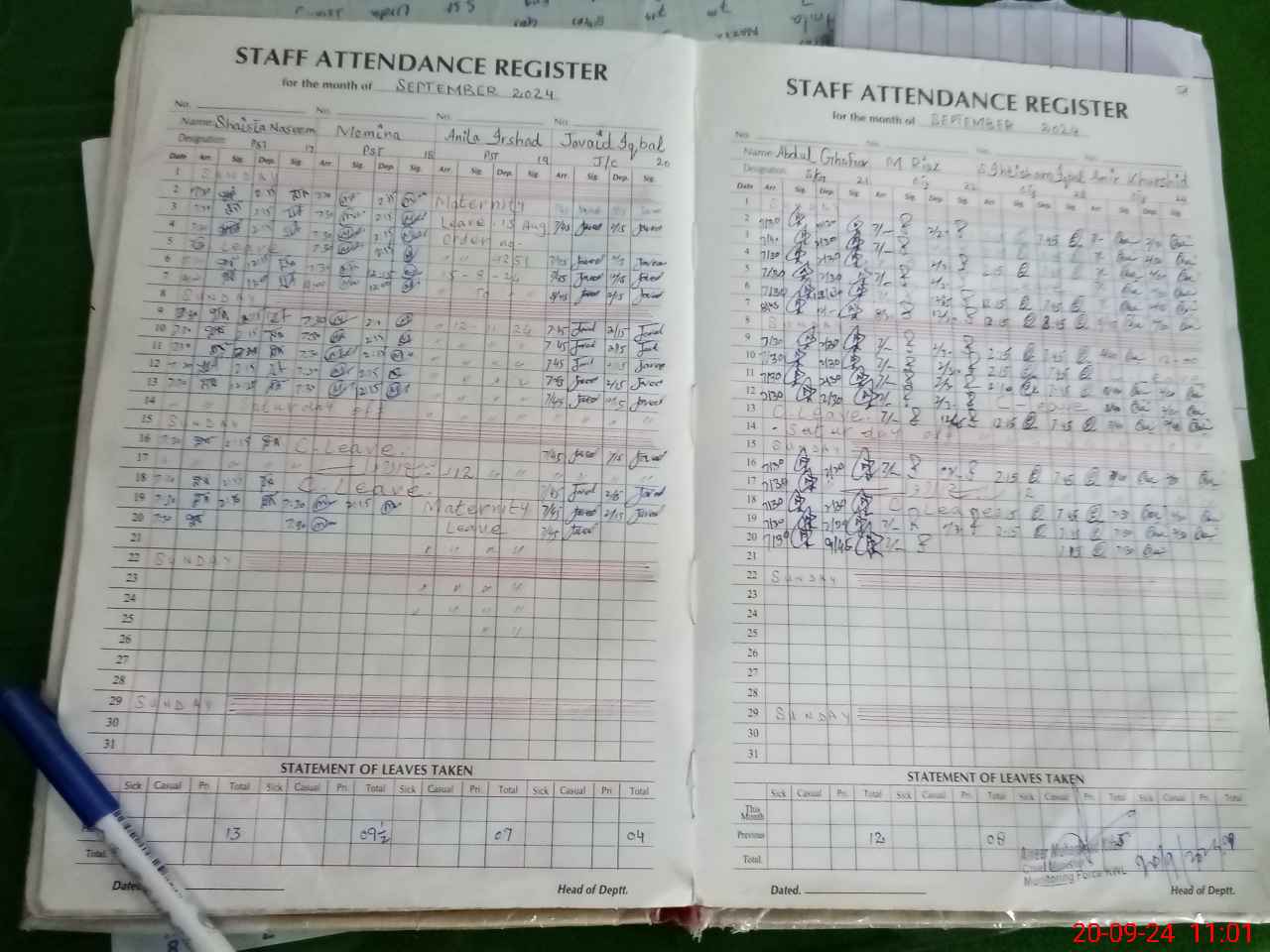 | Leave | Duty | Absent | Maternity | Medical | Ex- Pak |