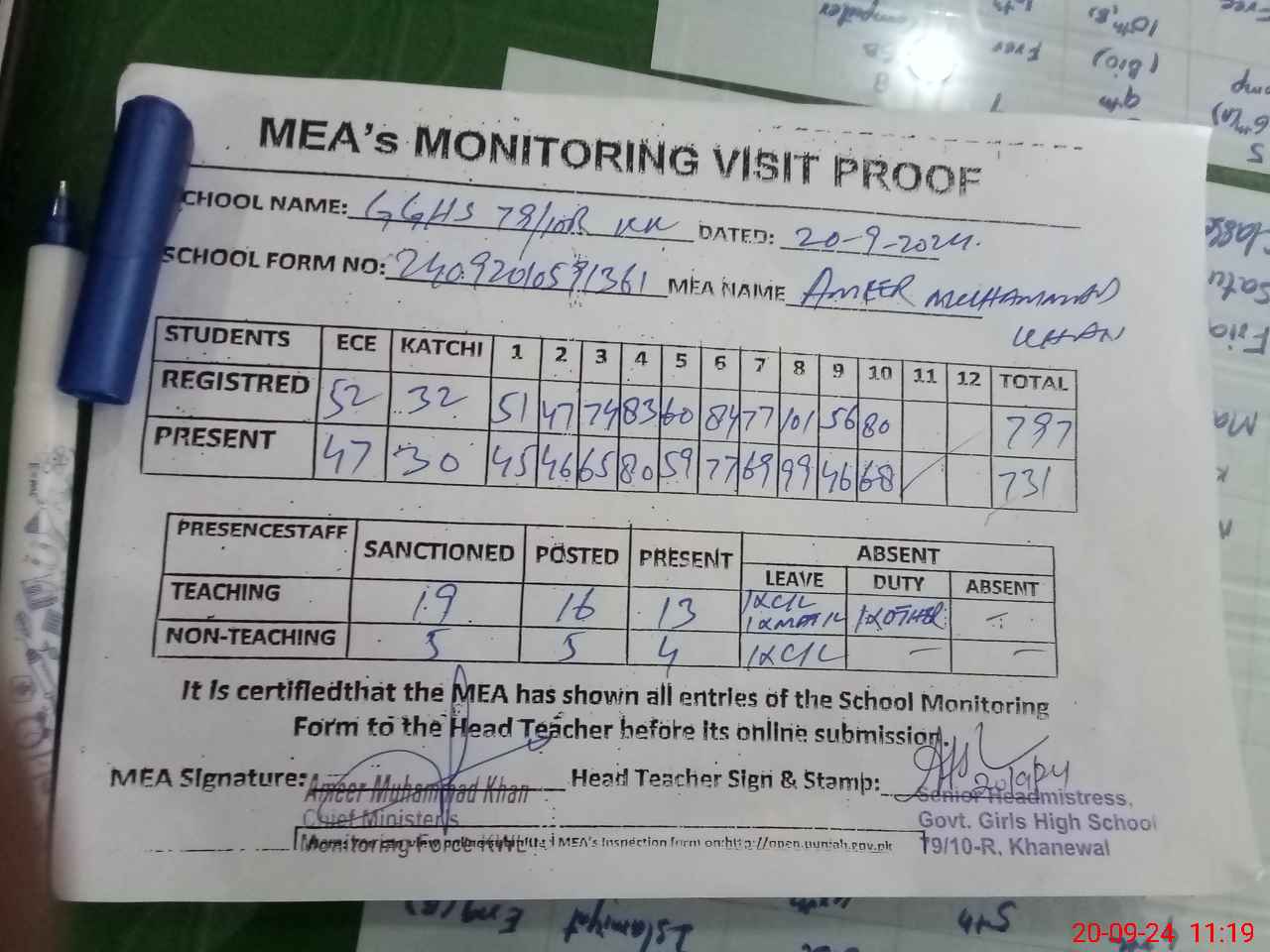 | EMIS Code: 36420119 | Name of School: GGHS 79/10-R, KACHA KHUH | |||