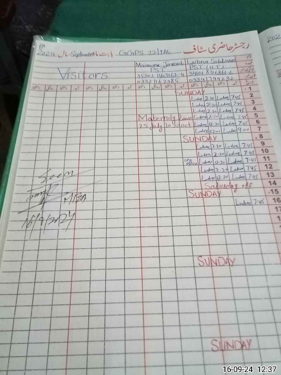 | 35**** | Ma**** Ja**** | PST | Regular | 31 | 0 | 0 | 31 | 0 | 0 | 0 | 0 | 0 | Maternity |