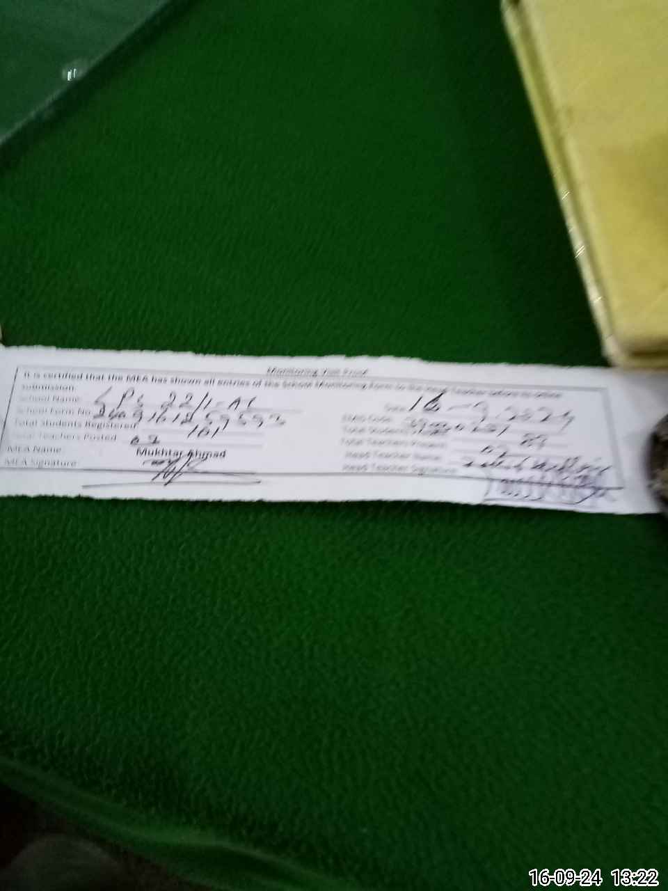 | Name: MU**** AS**** Designation: (School Headmaster's/Headmistress's) EST (GEN) Phone/Cell Number: 03**** |