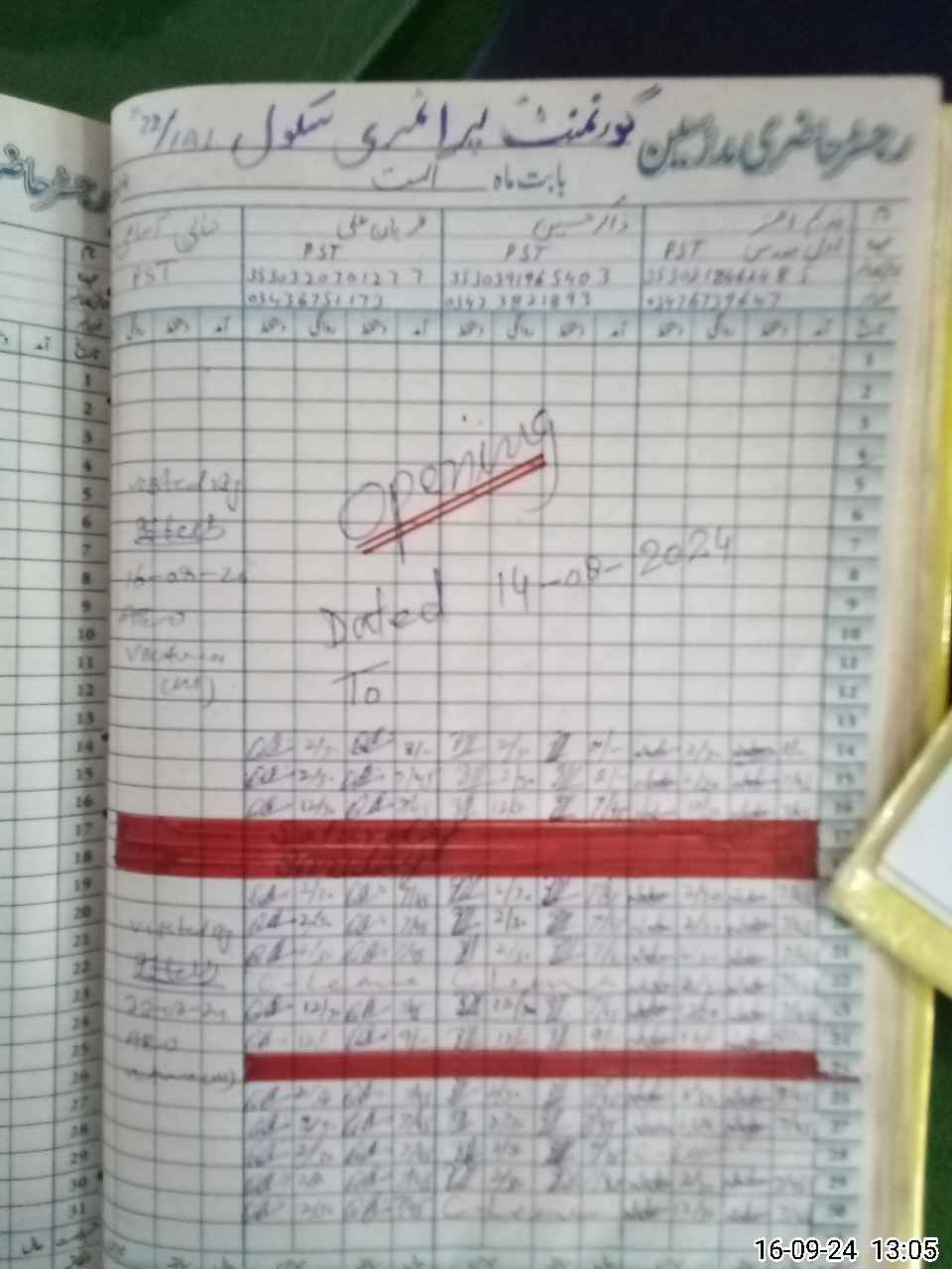 | CNIC | Full Name | Designation | R/C | Absence During Last Calender Month |