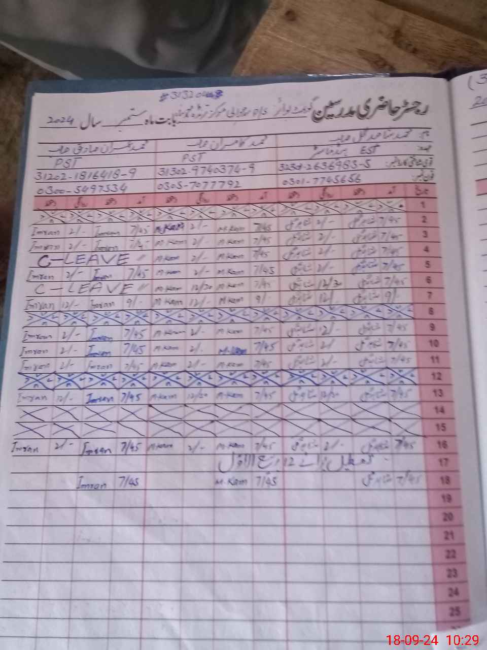 | CNIC | Full Name | Designation | R/C | Absence During Last Calender Month |