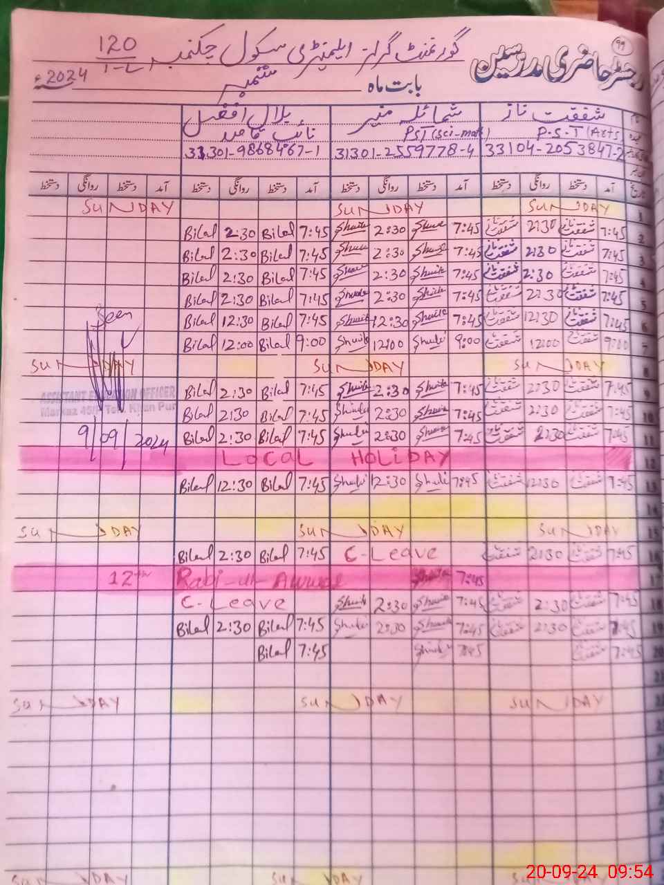 | Name: Sh**** Na**** Designation: (School Headmaster's/Headmistress's) PST Phone/Cell Number: 03**** |