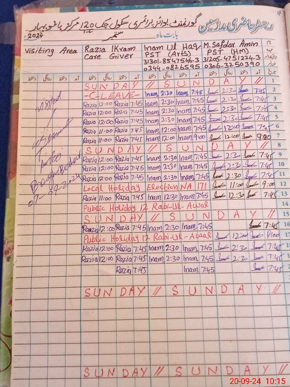 | Name: MSa**** Am**** Designation: (School Headmaster's/Headmistress's) PST Phone/Cell Number: 03**** |