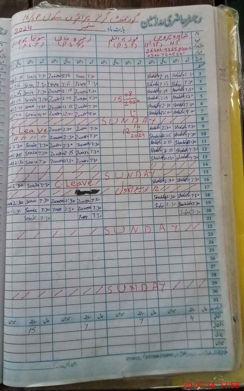 | Name: Zo**** Kh**** Designation: (School Headmaster's/Headmistress's) PST Phone/Cell Number: 03**** |