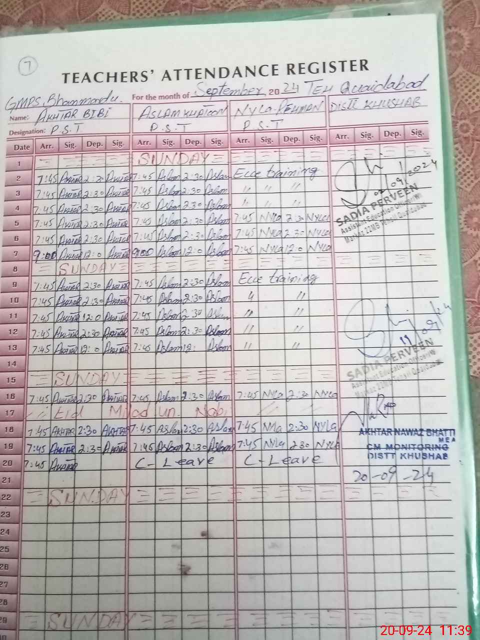 | Name: Ak**** Bi**** Designation: (School Headmaster's/Headmistress's) PST/PTC/JV Phone/Cell Number: 03**** |