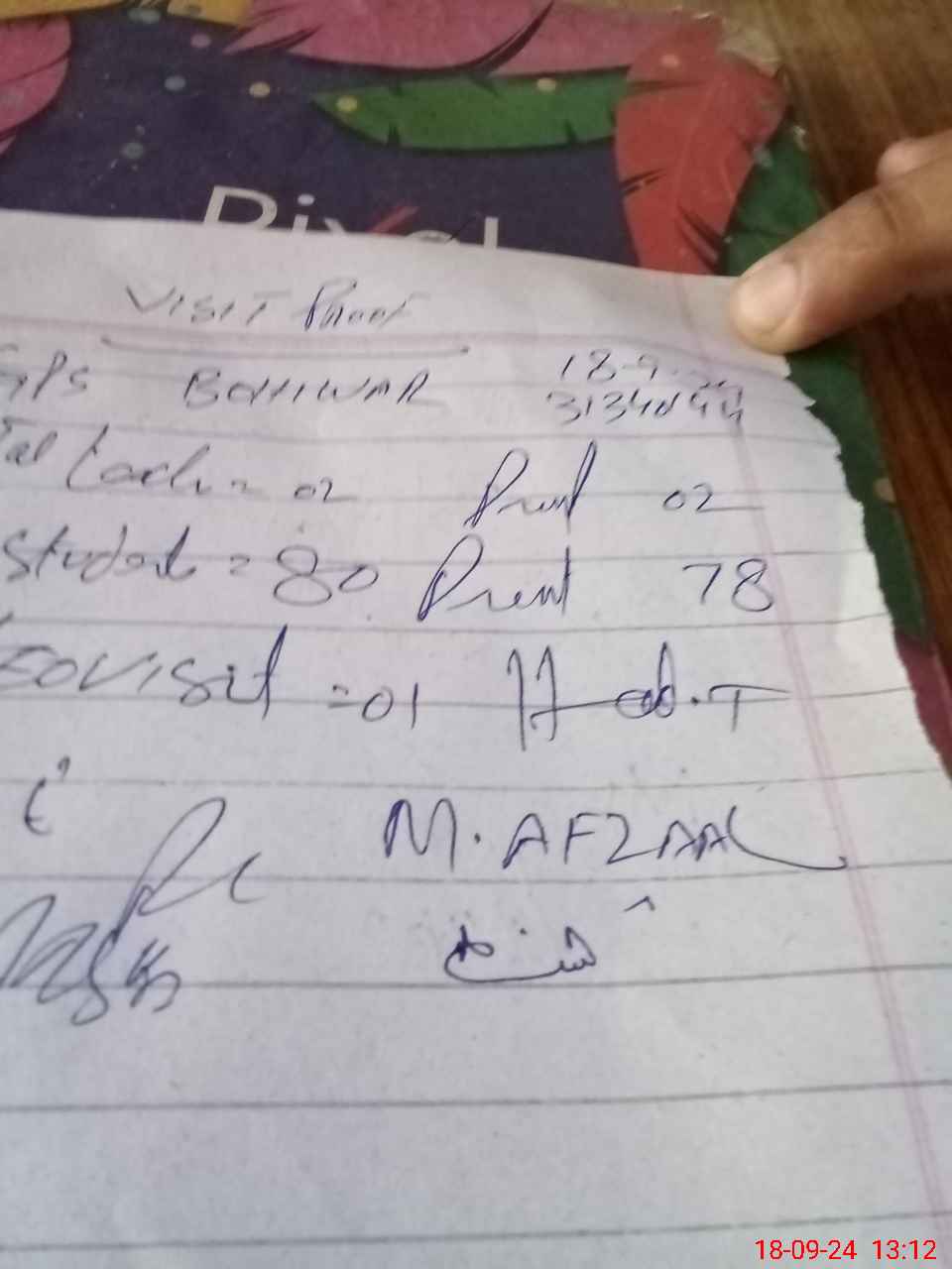 | Name: M.**** Designation: (School Headmaster's/Headmistress's) PST Phone/Cell Number: 03**** |