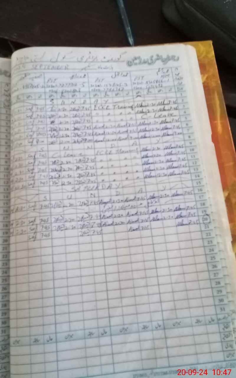 | CNIC | Full Name | Designation | R/C | Absence During Last Calender Month |