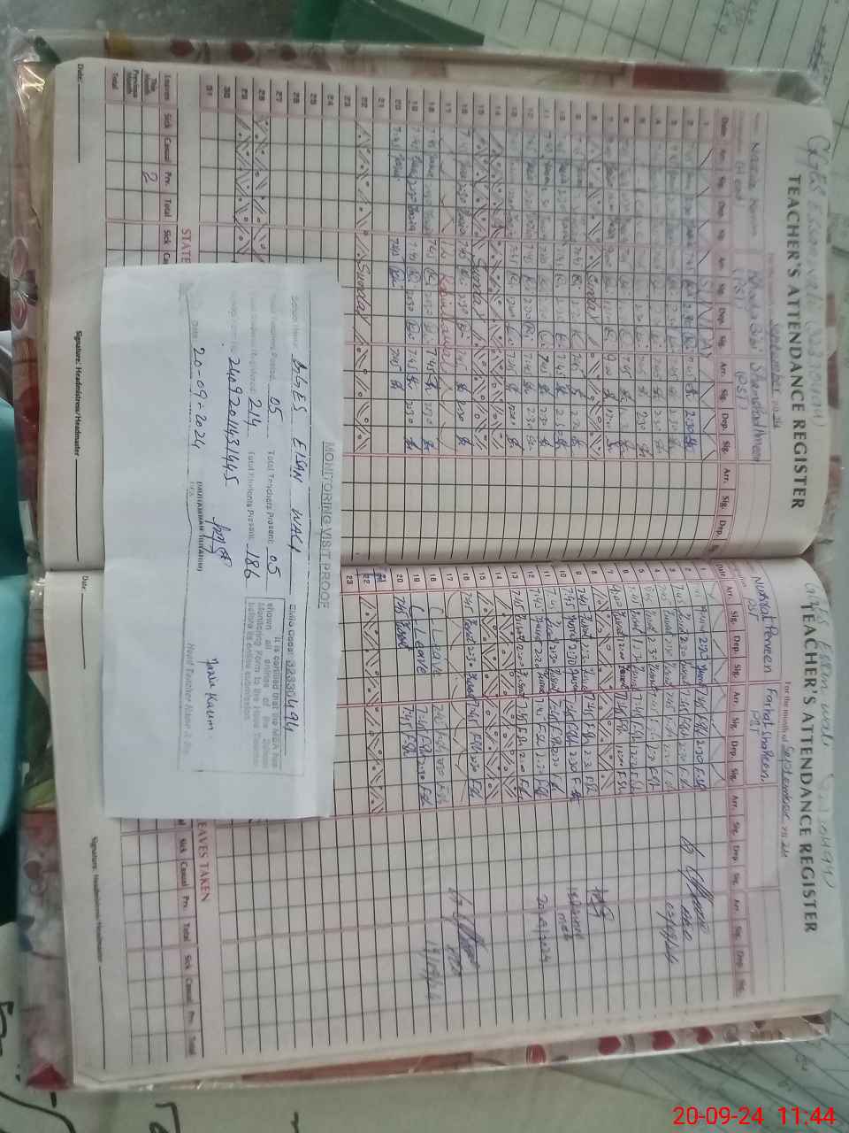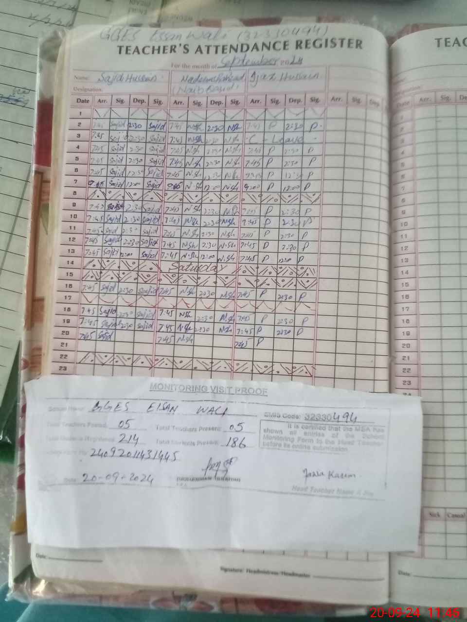 | Attendance Register | Head Teacher | MEA with School | Visit Proof |