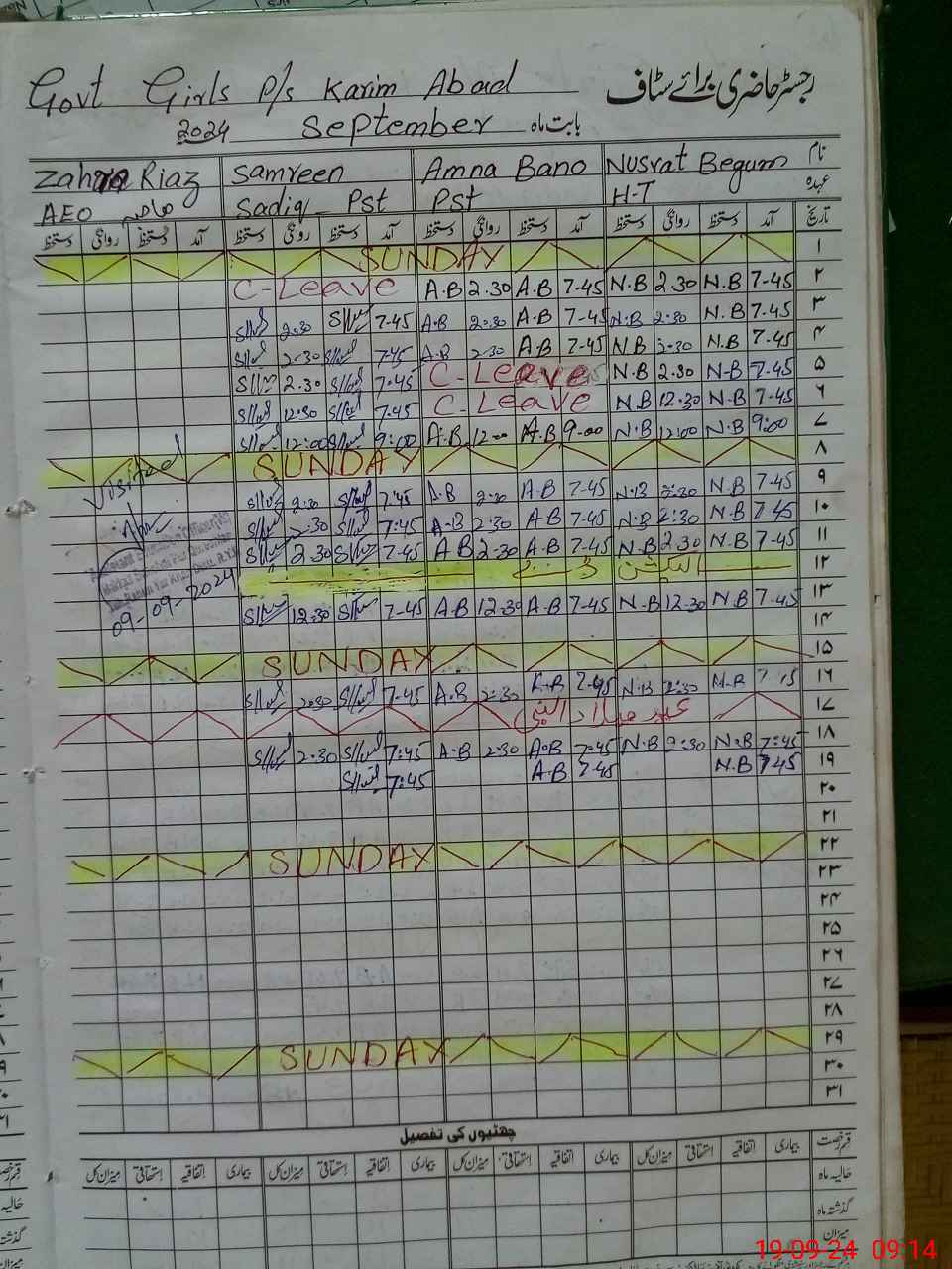 | CNIC | Full Name | Designation | R/C | Absence During Last Calender Month |