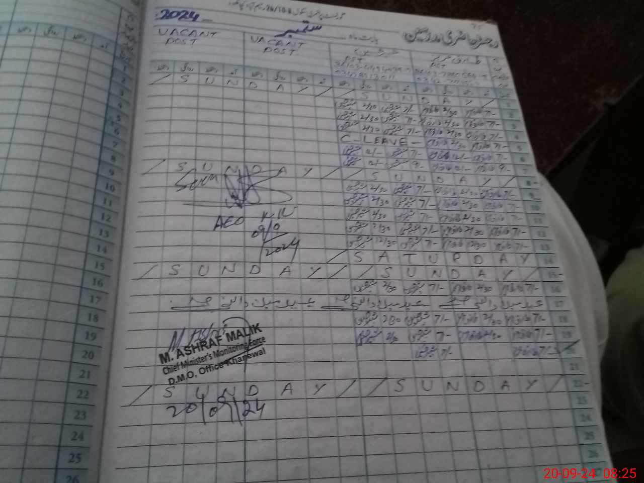 | CNIC | Full Name | Designation | R/C | Absence During Last Calender Month |