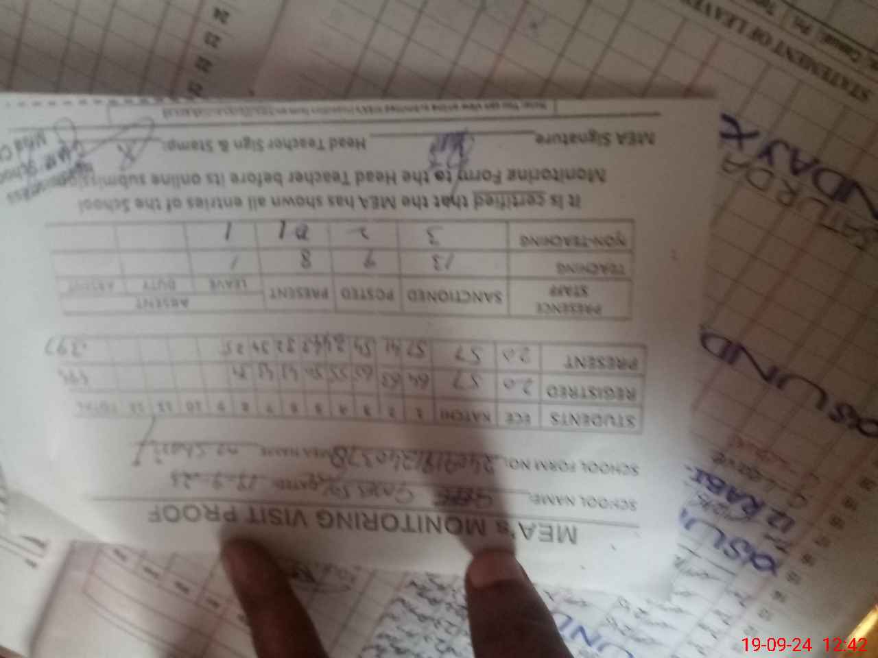 | Attendance Register | Head Teacher | MEA with School | Visit Proof |