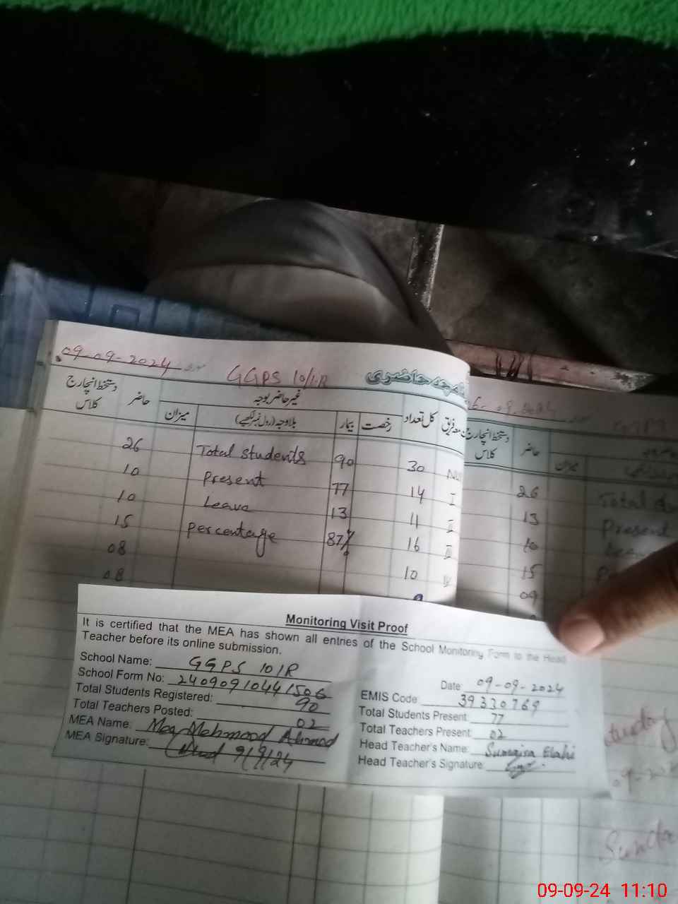 | Attendance Register | Head Teacher | MEA with School | Visit Proof |