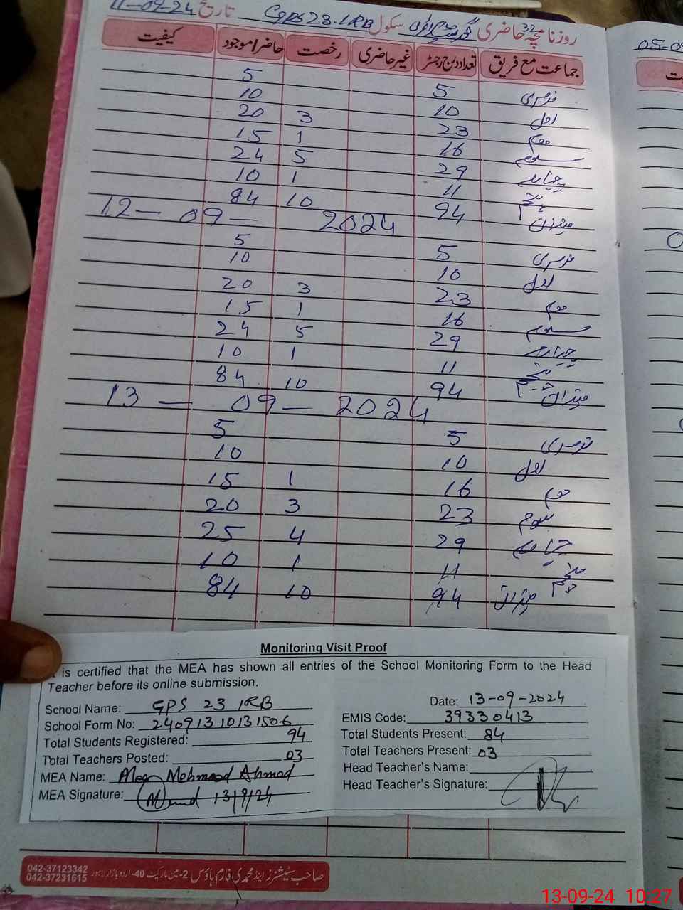 | EMIS Code: 39330413 | Name of School: GPS CHAK NO. 23/1-RB | |||