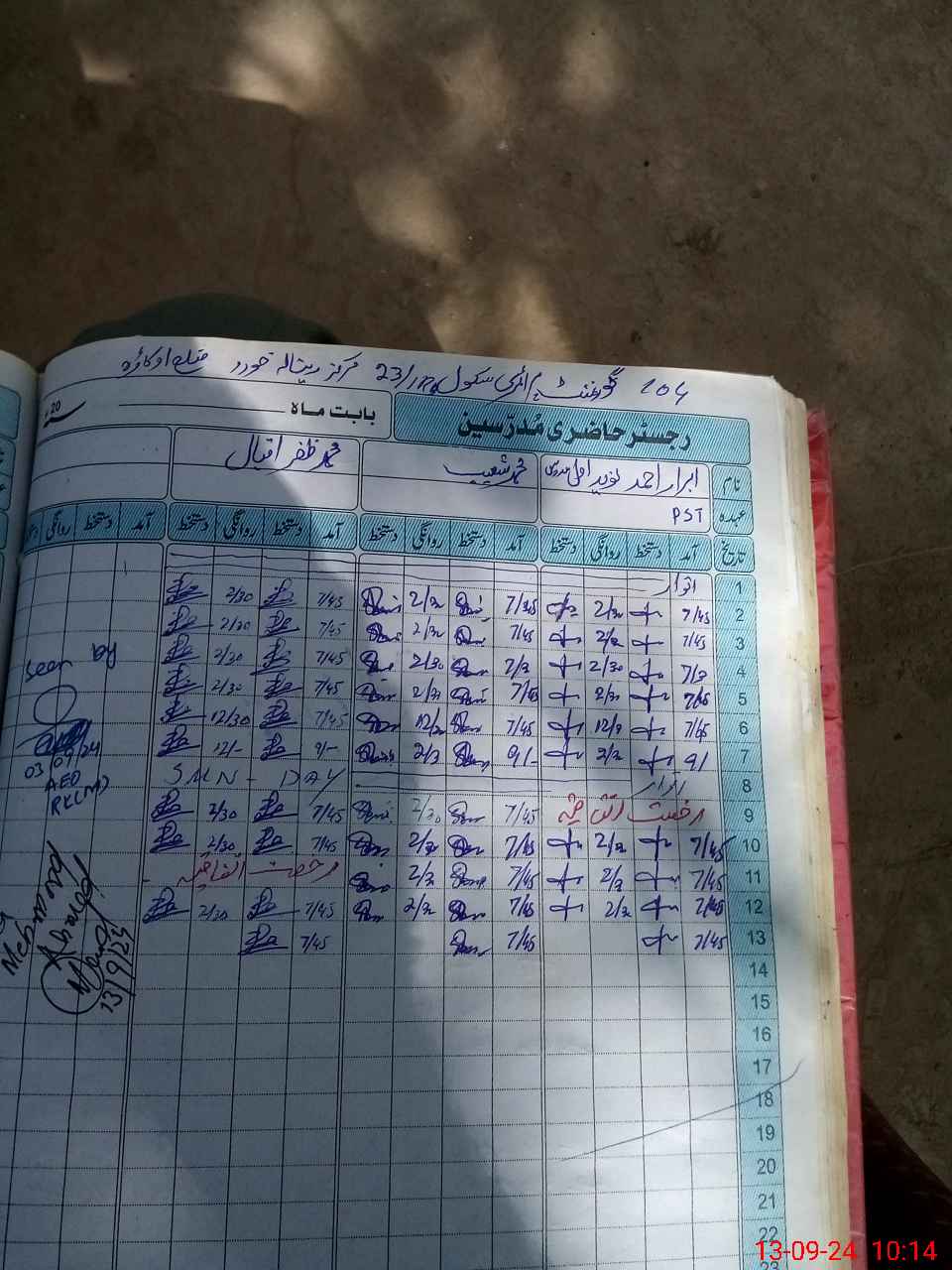 | Name: Ib**** Ah**** Na**** Designation: (School Headmaster's/Headmistress's) PTC/JV Phone/Cell Number: 03**** |