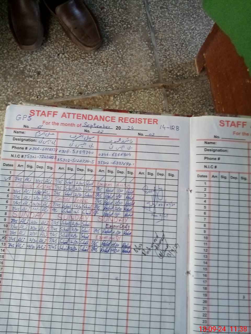| CNIC | Full Name | Designation | R/C | Absence During Last Calender Month |