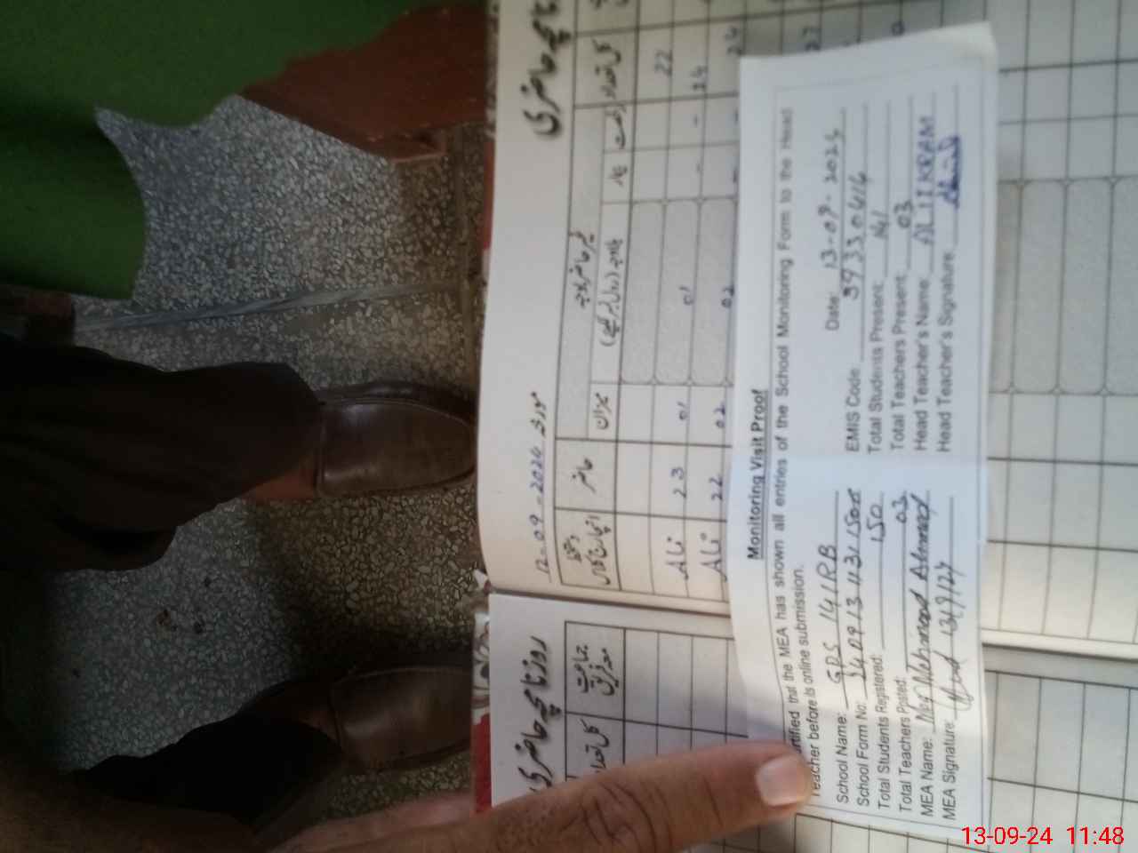 | Attendance Register | Head Teacher | MEA with School | Visit Proof |