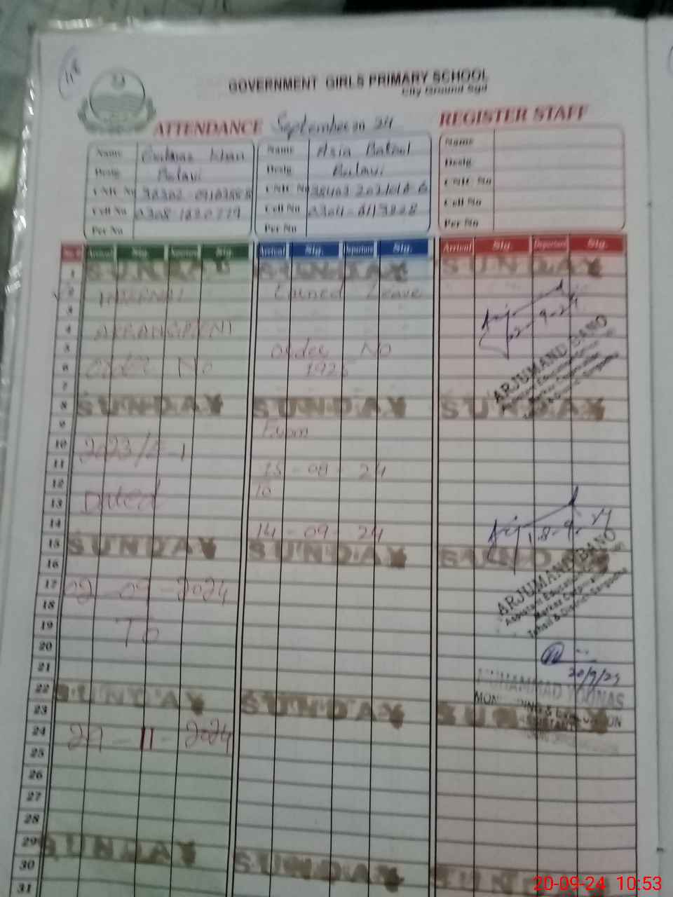 | 38**** | Mu**** Sa**** | SW | 0 | 0 | 31 | 0 | 0 | 0 | 0 | 0 | 0 | Absent (Un-Authorized) | |