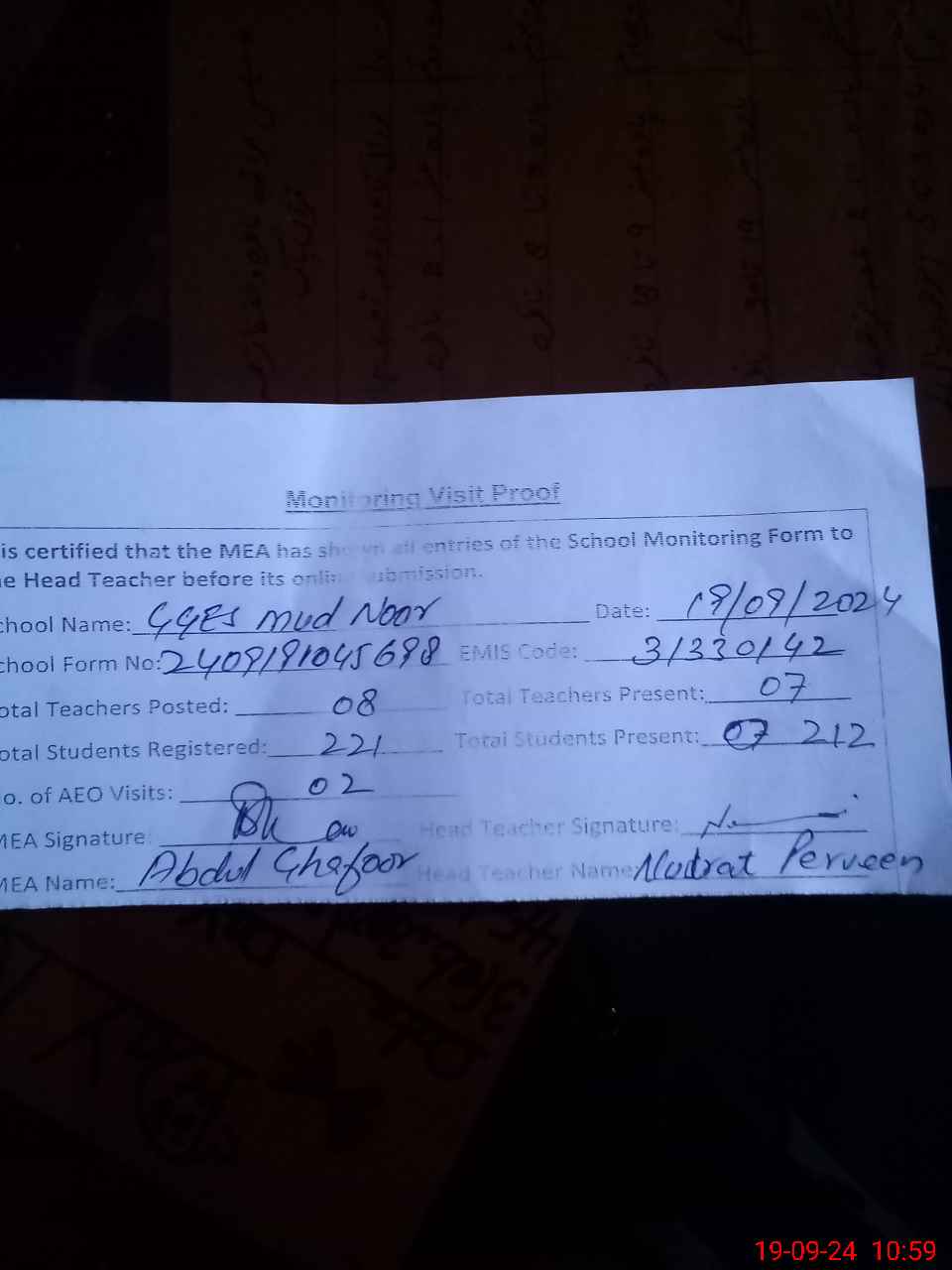 | EMIS Code: 31330142 | Name of School: GGES MAD NOOR KOT SAMABA | |||