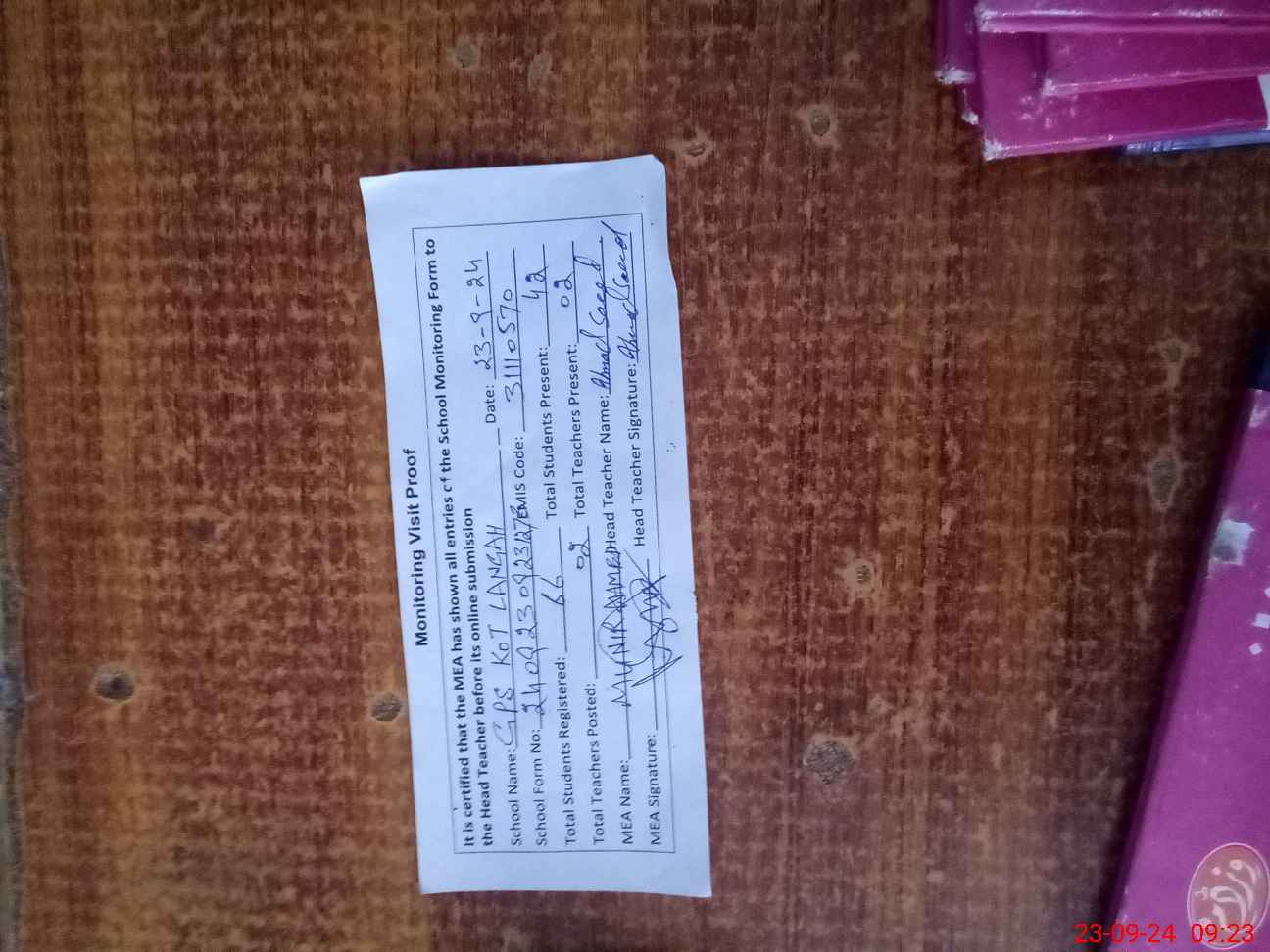 | EMIS Code: 31110570 | Name of School: GPS KOT LANGAH | |||