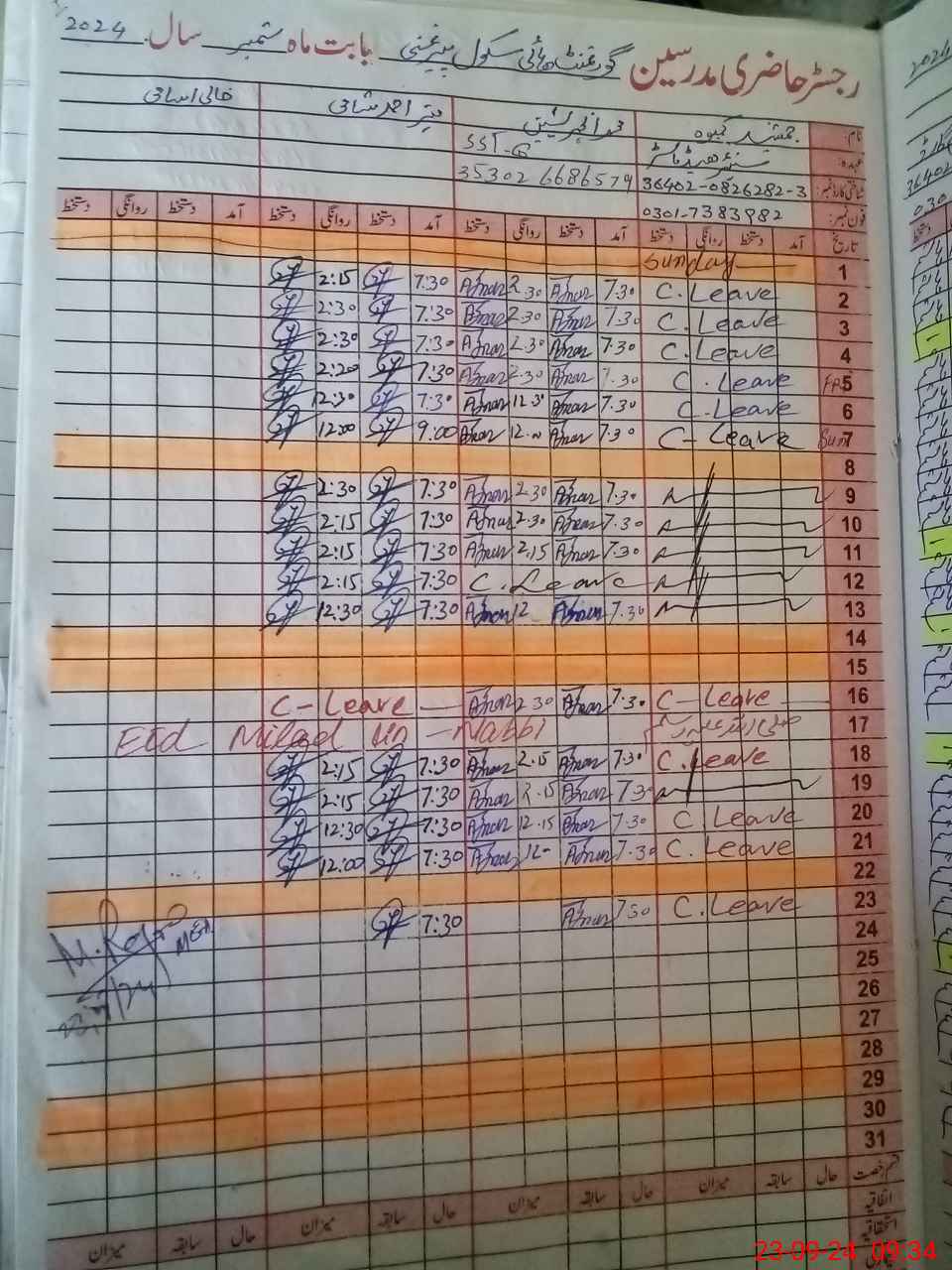 | CNIC | Full Name | Designation | R/C | Absence During Last Calender Month |